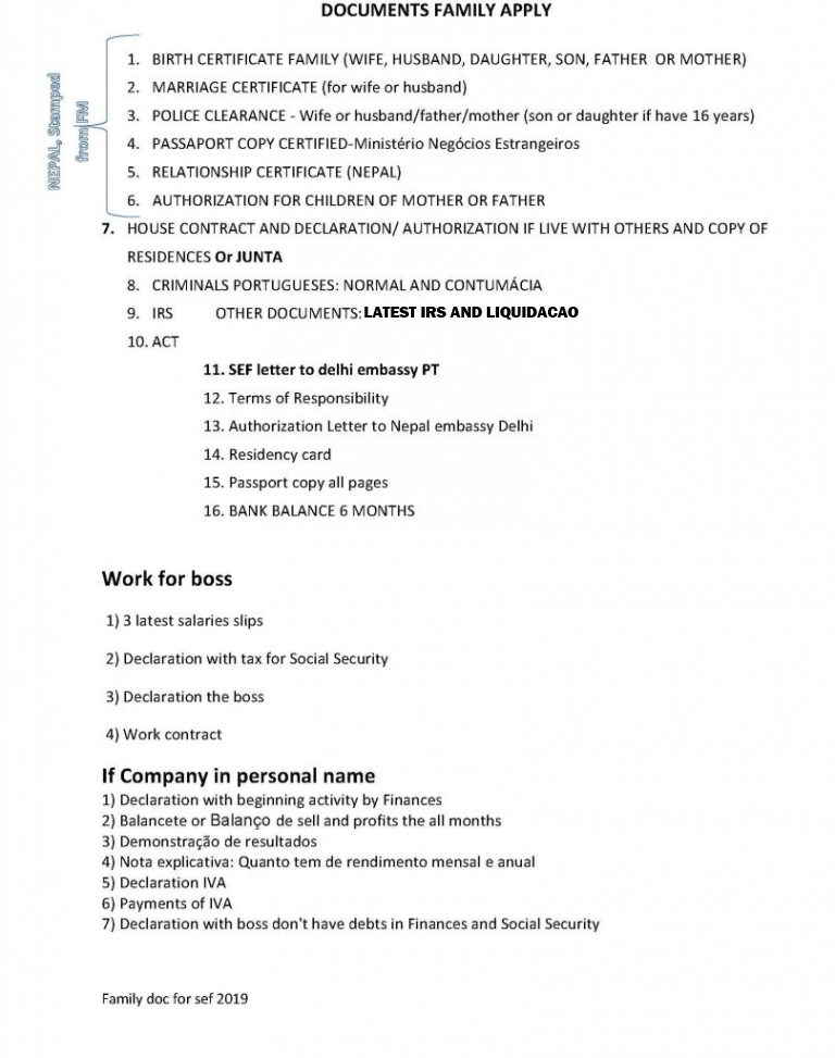 DOCUMENTS FOR FAMILY APPLY NEPAL,